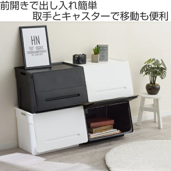 収納ケース フタ付き 前開き ビッグエル 3個セット ( 幅45×奥行34×高さ31cm 収納ボックス 白 黒 収納 ケース スタッキング プラスチック おもちゃ箱 ストッカー 衣装ケース 衣類収納 おしゃれ )【39ショップ】