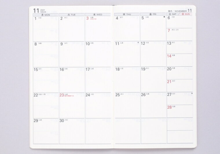 ビジネスシーンや学生にオススメの月曜始まりです。