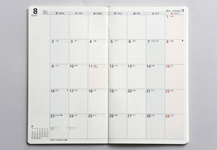 シンプル&スマート手帳月間ページのみ掲載されたシンプルなマンスリータイプ。