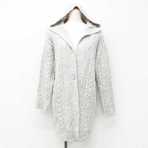 【中古】ジーユー GU ニット カーディガン 長袖 ミドル丈 ケーブル編み ワンボタン フード付き ウール混 グレー S レディース 【ベクトル 古着】 201015 ベクトルプレミアム店