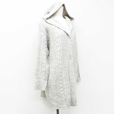 【中古】ジーユー GU ニット カーディガン 長袖 ミドル丈 ケーブル編み ワンボタン フード付き ウール混 グレー S レディース 【ベクトル 古着】 201015 ベクトルプレミアム店