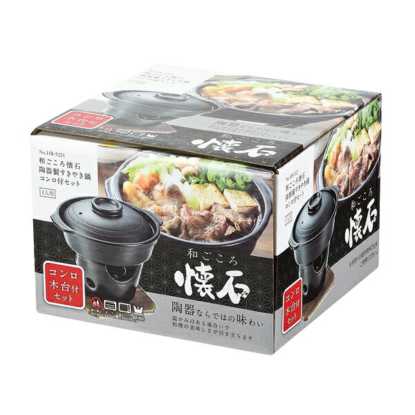 和ごころ懐石 陶器製すきやき鍋コンロ付セット【 一人鍋 一人鍋 セット 一人鍋 おしゃれ 一人鍋 コンロ 】 [TG99]